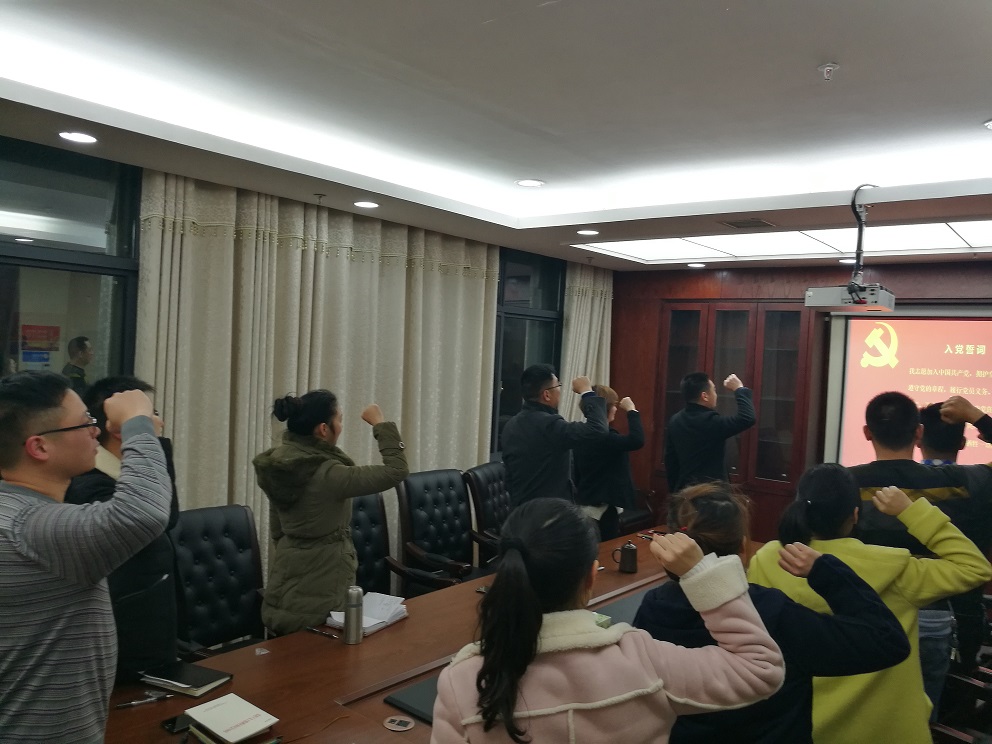 △全體黨員在黨支部書記帶領(lǐng)下重溫入黨誓詞