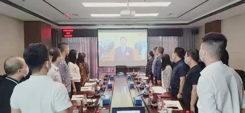 圖為集團(tuán)黨委組織黨員干部集中收看黨的二十大開幕會(huì)盛況